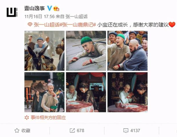 面對網(wǎng)絡(luò)上張一山飾演的韋小寶的爭議,張一山工作室率先簡單回應(yīng),表示“小寶還在成長,感謝大家的建議”,顯然工作室認為后續(xù)的劇情及演技可以改變觀眾的看法。