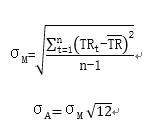 SigmaA表示歷史年化標準差(歷史年化波動率);SigmaM 表示月度總回報率的標準差;n 表示計算期間所含月數(shù);TRt表示第 t個月的基金總回報率;TR 拔表示n 個月的基金總回報率平均值。